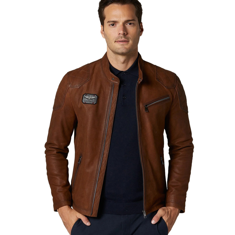 Willy Cartier Men’s Brown Moto Leather Jacket