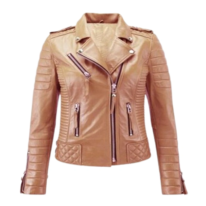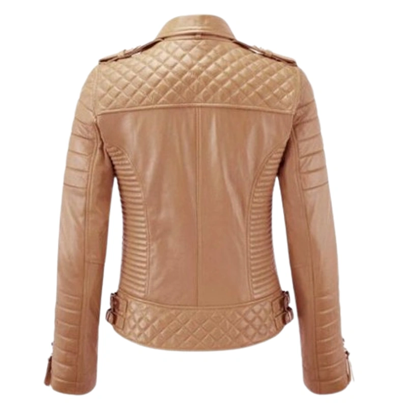 Women’s Alison Brown Quilted Biker Leather Jacket