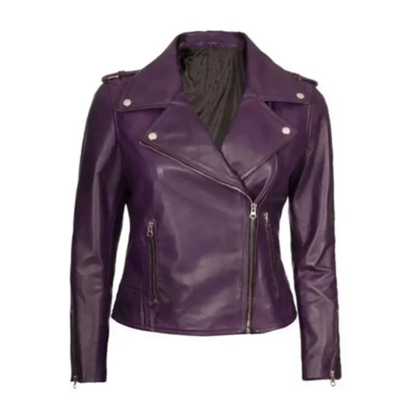 Women’s Purple Waxed Lambskin Asymmetrical Biker Leather Jacket