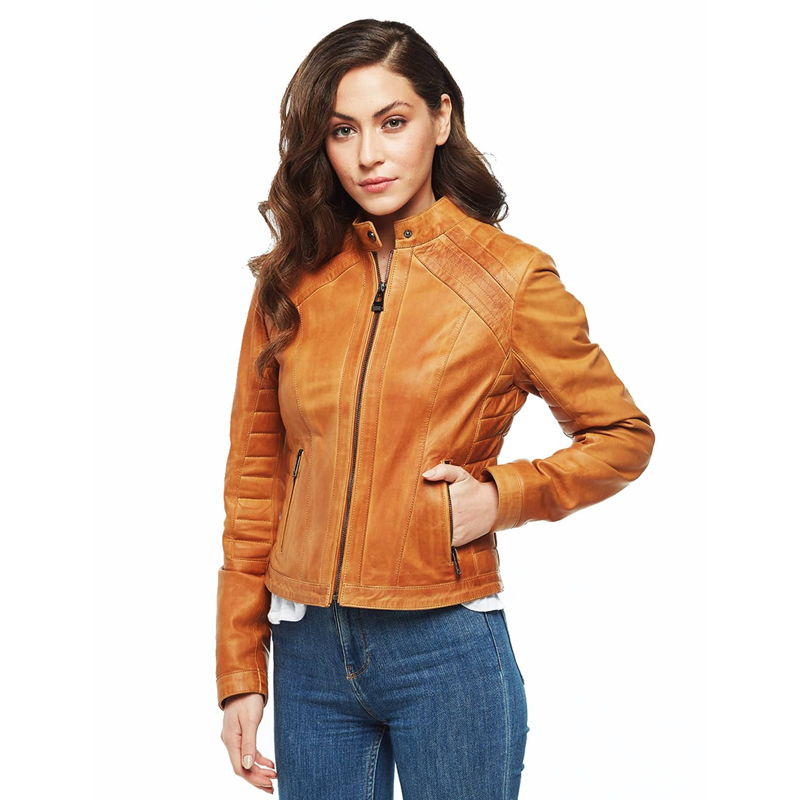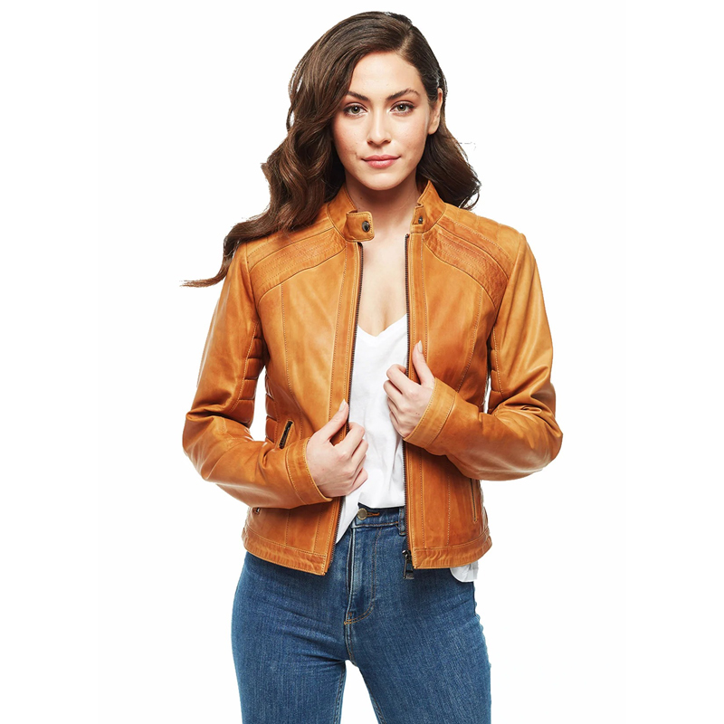 Women’s Real Tan Waxed Leather Jacket – Mia