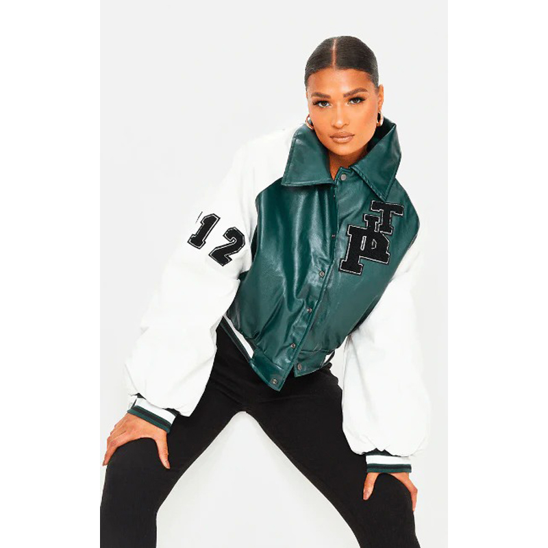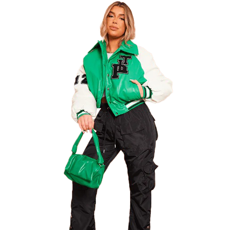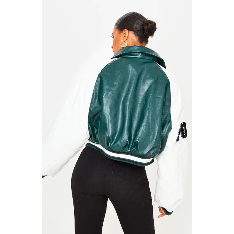 Women’s Real Leather Varsity Bomber Jacket – Classic Sporty Style
